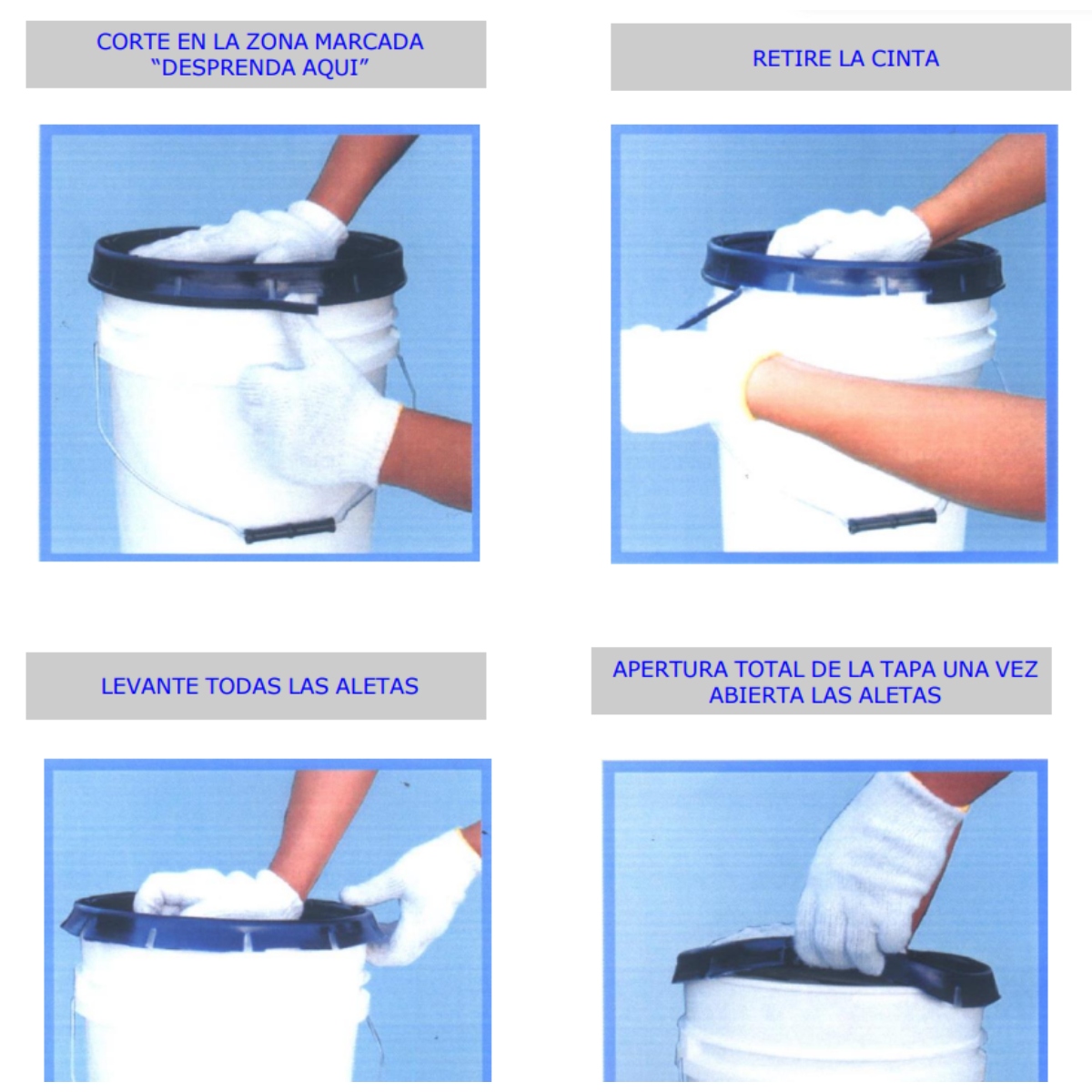 TAPA CON CIERRE SEGURO Y HERMÉTICO, IDEAL PARA PINTURAS, GRASAS, PRODUCTOS EN POLVO, SEMISÓLIDOS Y USO ALIMENTARIO.