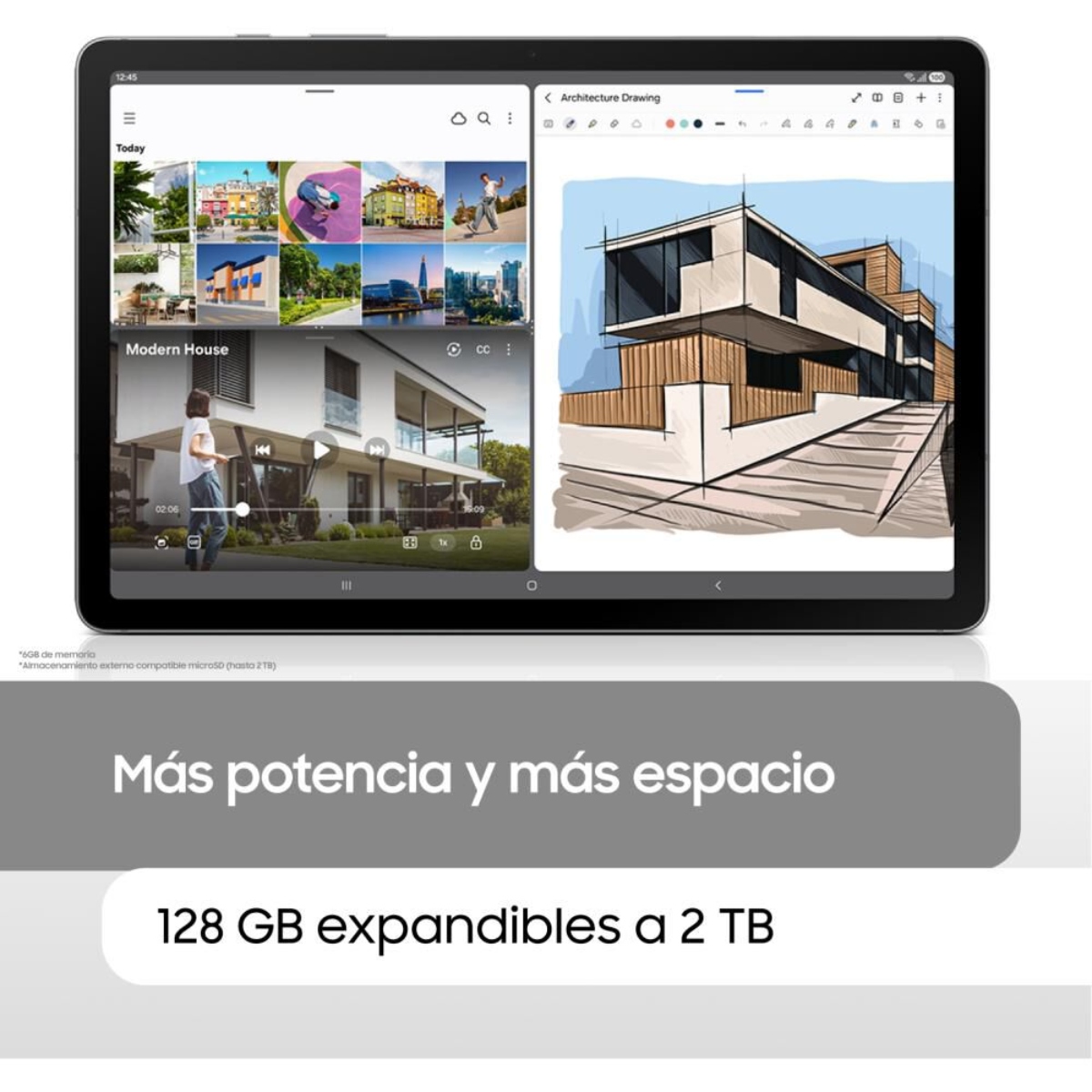 Su almacenamiento de 128GB ofrece excelente capacidad, ampliable hasta 2TB por MicroSD.